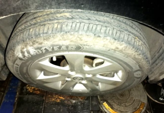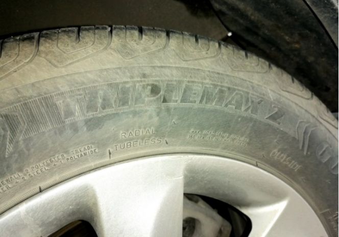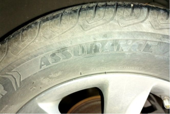 检查一下固特异轮胎, 如果有小子就扣一下,保持胎面干净。这固特异御乘二代轮胎也服役接近四年啦。