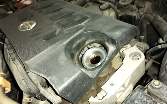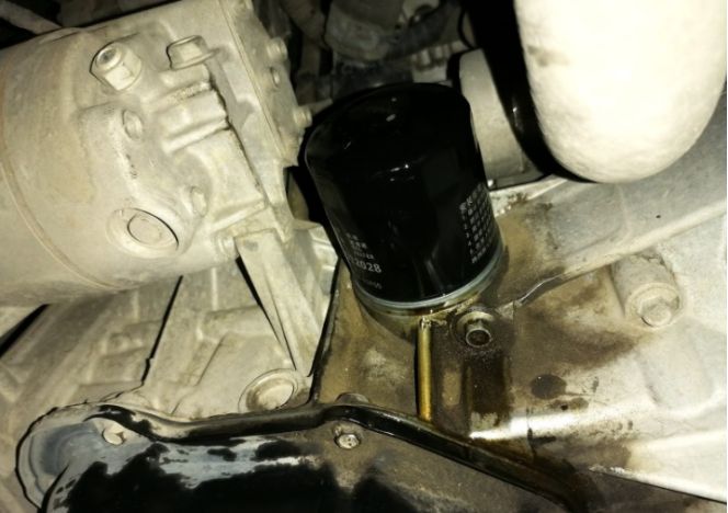 卸下机油滤芯。