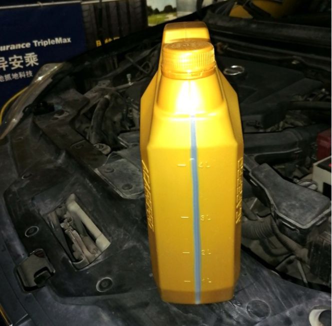 准备加机油,颜色圆润淡金色,有些透明。这是上次剩下的机油。