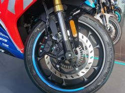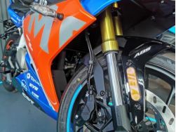 升级了KYB减震,金色的叉管很明显,避震升级会让我们在日常骑行中骑行姿态舒服一点,同时还可以提升对整辆车的操控,减少器件之间的磨损。