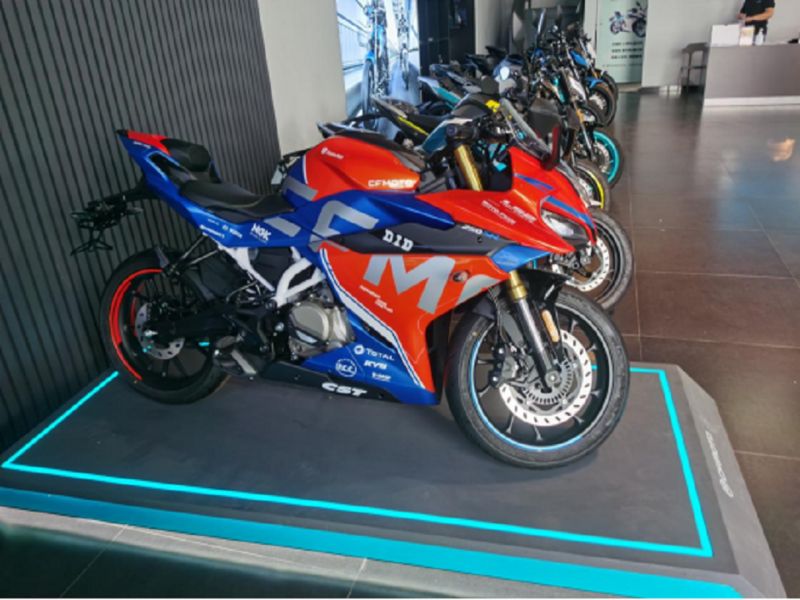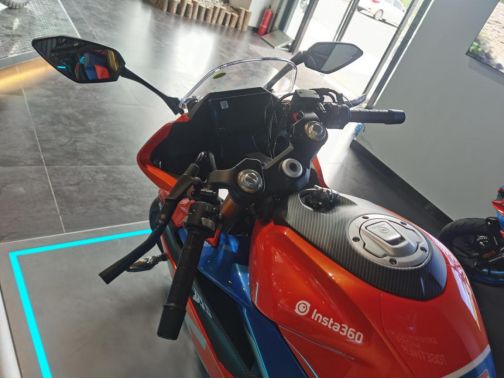 朋友骑车有段时间了,马上也要十一了,最近经常和我说买车一起出去玩,其实之前也骑过家里的车,没啥难度,工作地方也不禁摩,上下班代步也不失为一个好的选择,就开始看车,看到摩友圈里推荐比较多的车那就是最近比较火热的春风250SR火焰橙赛道版,前段时间一直在网上看车,近期终于有时间去线下附近的店看了车,一进到店里就看到了炫丽的火焰橙,在众车中显得格外耀眼,有丢心动的感觉。