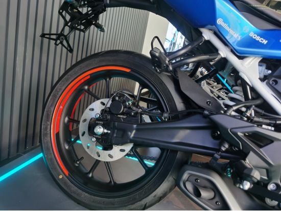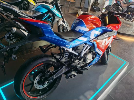 动力用的是单缸水冷发动机,销售说提速还是挺快的,最大功率为20.5kw/9750rpm,最大扭矩为22Nm/7500rpm,我觉得动力还是不错的,在加上车重也比较轻,操控相对简单点,骑行起来比较轻松,很适合用来平时上下班。最重要的是当我骑上去的那一瞬间,姿态舒适度都给人带来热血的感觉。