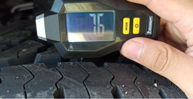 拆装量了一 下,轮胎的花纹深度是非常新的轮胎。
