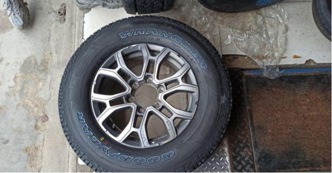 固特异牧马人静音闯客越野胎。这是他的全名。特点就是全地形静音长里程。有句话车友一直吆喝, 我已经耳濡目染记下来了。固特异在手,崎岖变坦途。
