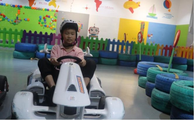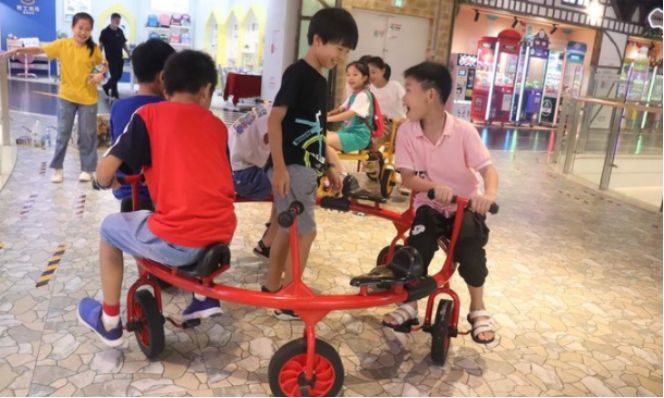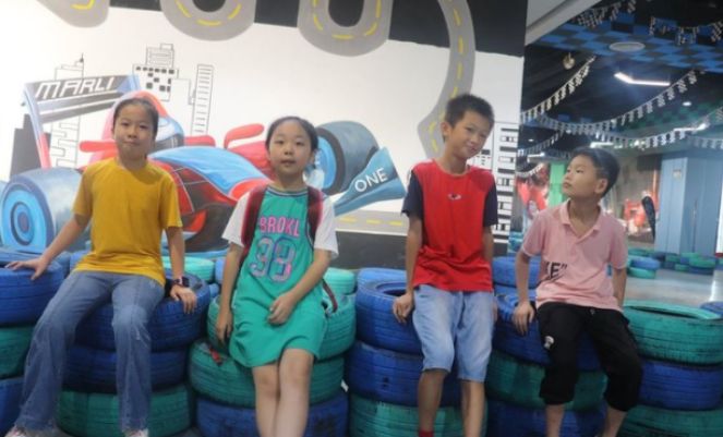 他们是一个班的在一起玩还是很开心的,带他们去玩了卡丁车,游戏项目,然后他们一起吃自助餐,还是很开心的。