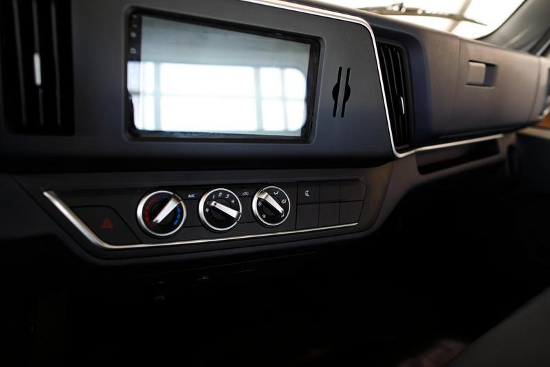 进到车里体验一下,空间和视野是真不错,车厢高度和侧向宽度都很充足,前挡风和侧窗还有几个不同角度的后视镜,车身四周的情况一览无余。