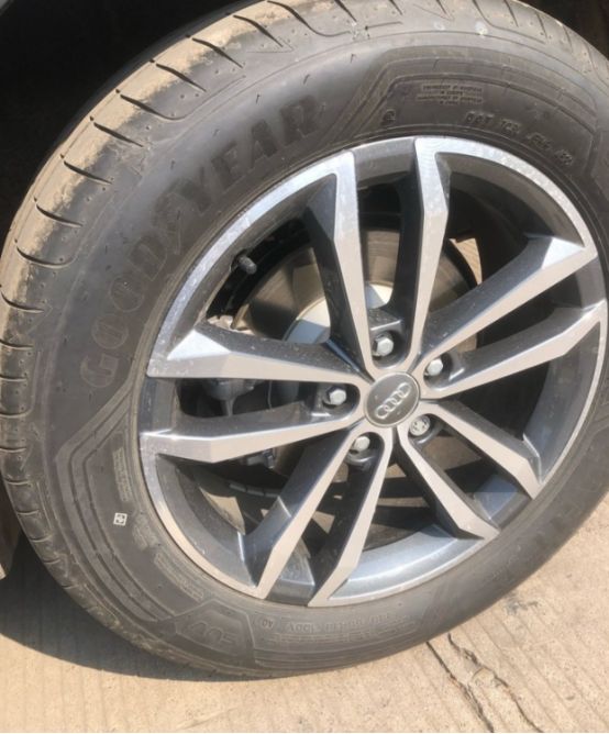 今天的座驾奥迪q3,在山区行驶确实不错好的操控性能不仅来自爱车的自身,最大的功劳就是固特异轮胎的轮胎采用不对称花纹设计,胎面花纹非常漂亮,轮胎上细小的沟槽整齐排列,在沟槽底部还能看见细小的横向花纹块,宽大的排水主沟槽纵贯轮胎,霸气十足,胎肩圆滑的设计尽显轮胎的精准操控性能的突出表现,在山区中行驶,是一种刺激享受,
