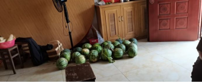 瓜农已经选摘好西瓜,因为梅雨超量,今年的瓜减产了,淳朴的农民依然热情着切瓜、吆喝着“快席,快席",西瓜还是那样爽脆鲜甜。