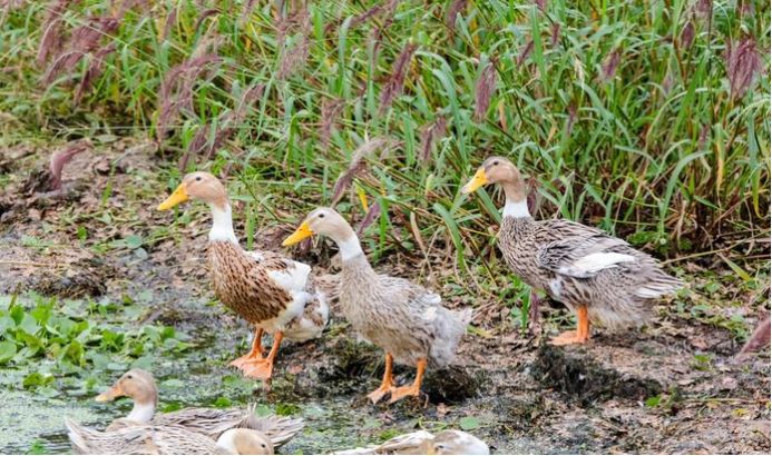 水池边还有几只鸭子正在嬉戏,在这里你会愿意放下一切,只做一只白鹭自由飞翔。