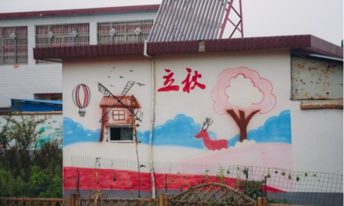 远处,是成片的农房,很多农户都盖上了二三层的小楼,利用这些小楼的墙体,绘制了富有农家气息的墙画,有节气画,有农家生活场景画,非常漂亮。粉墙黛瓦的建筑上,赫然写着安丰塘三个大字,更加深了我们对这片土地的热爱。美丽的乡村,美丽的生活,在这里生活一定是一件舒服的神仙日子。