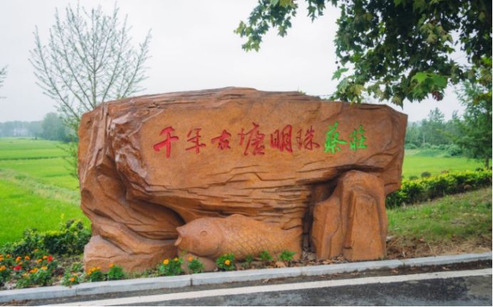 在安丰塘的旁边,有一个小村庄,叫蔡庄,这也是朋友推荐来的乡村旅游地。紧靠着安丰塘,来蔡庄游玩的人越来越多。路过一个老凿的场,下了坡道,我们就来到了蔡庄的中心广场。现在农村也建立了很多的中心广场,环境十分优雅,成为了村民休闲、游客旅游的好地方。