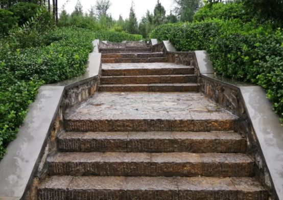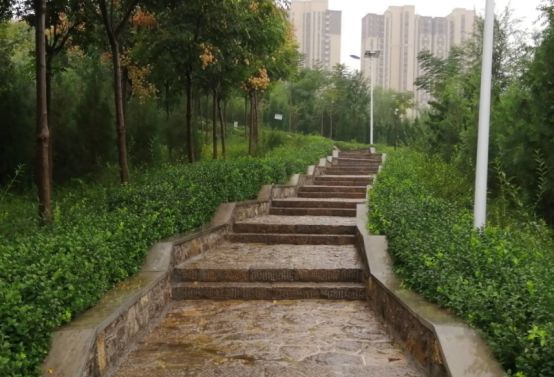 登山台阶修建的非常宽大舒适,方便人们登山健身。