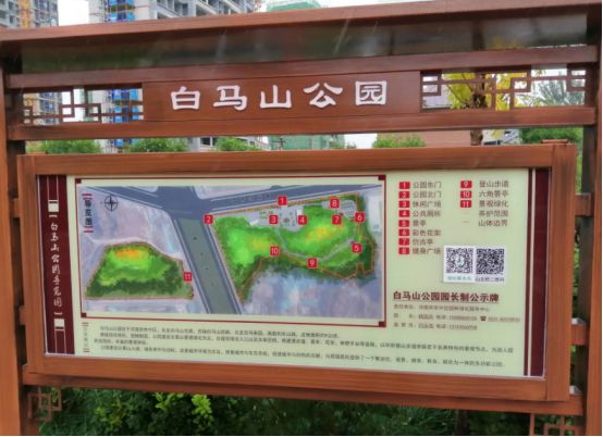 白马山公园东门。没有高大上的大门和牌坊,隐藏于市井路边,平易近人,体现着为人民服务的宗旨。
