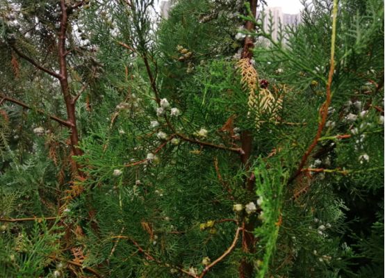虽然已是初秋,但雨中的松柏依然苍翠。