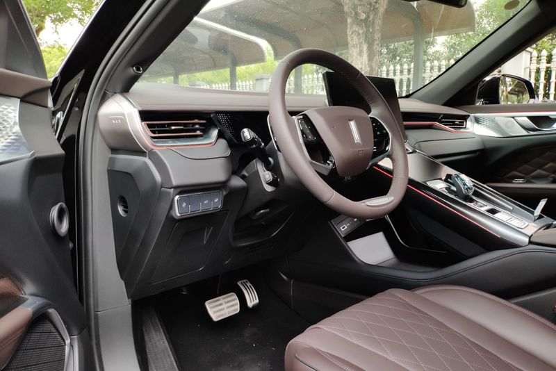 内饰设计非常的简洁大气,中控台很有层次感,超大的中控屏科技感满满,用料也非常的豪华,基本都是软性材质,质感很好。