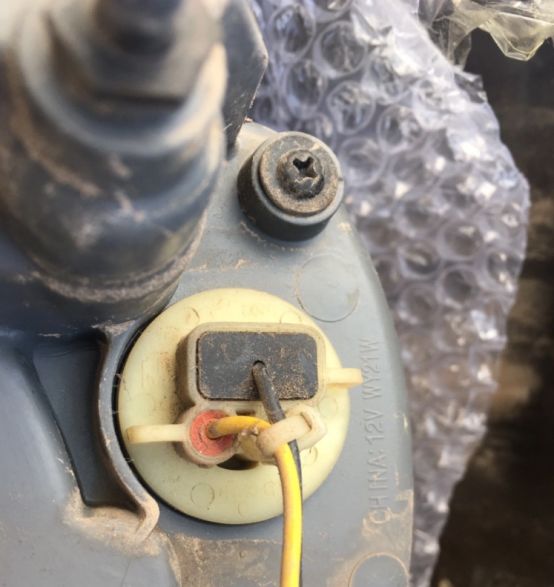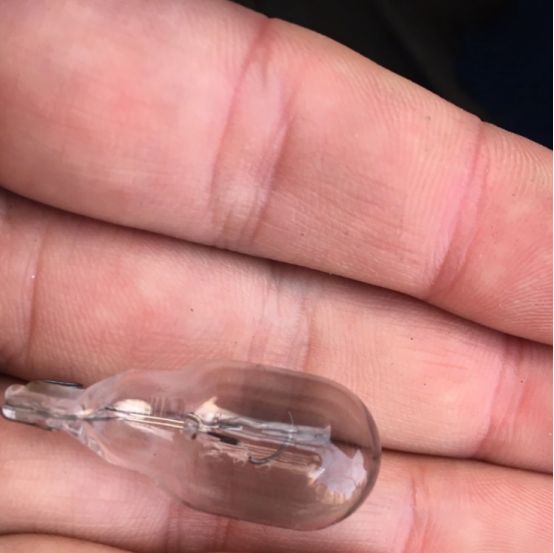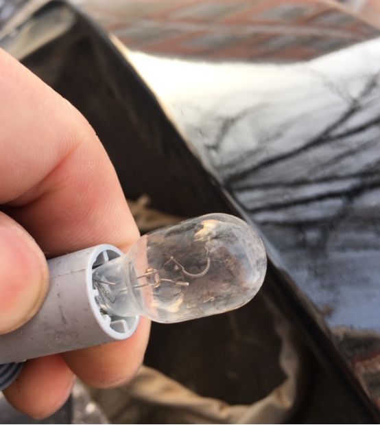 拆下的倒车灯泡!都烧黑了。灯泡里的钨丝都断了!这样的卤素灯,优点就是便宜,缺点,耗电,不亮,热度高!