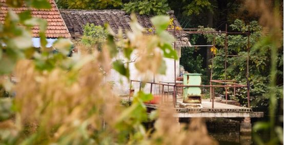 池边的小屋舍显得有点孤单了, 原本周围的绿色瓜藤蔓都不见了。