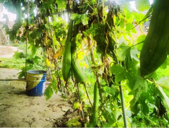 △这是来家的菜园子,一片丰收的景象,有大葱,大白菜,还有丝瓜和草莓