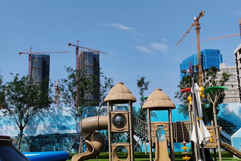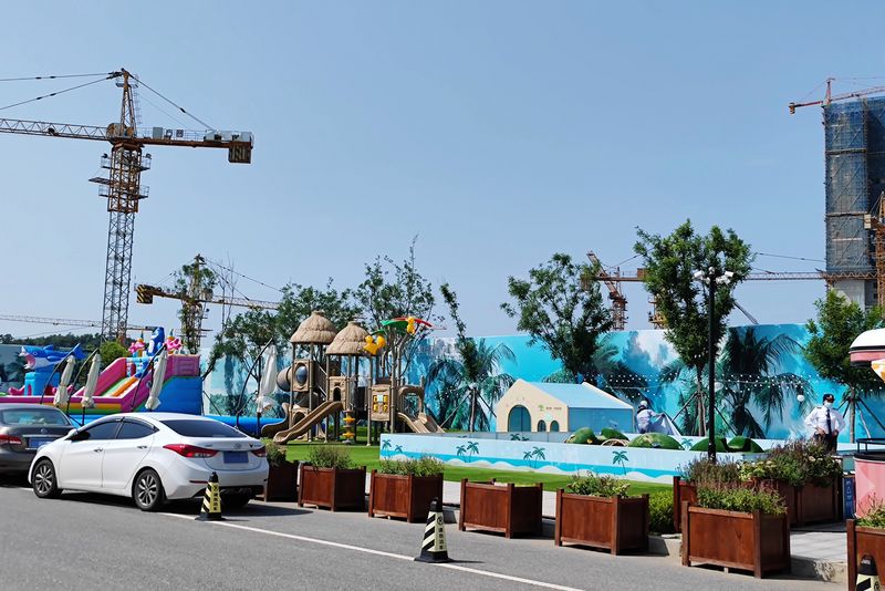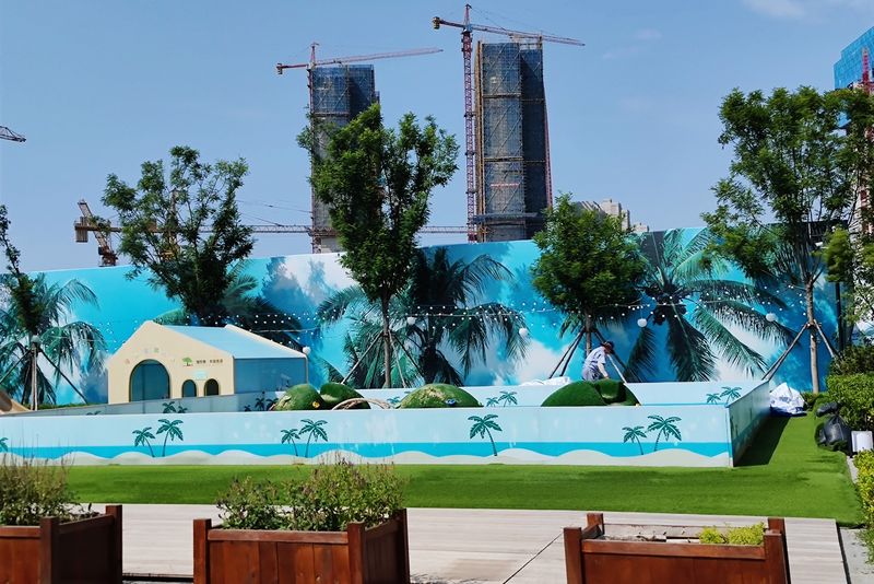 这个小公园的后边是被围起来的,以后可能还要增添一些什么设施。