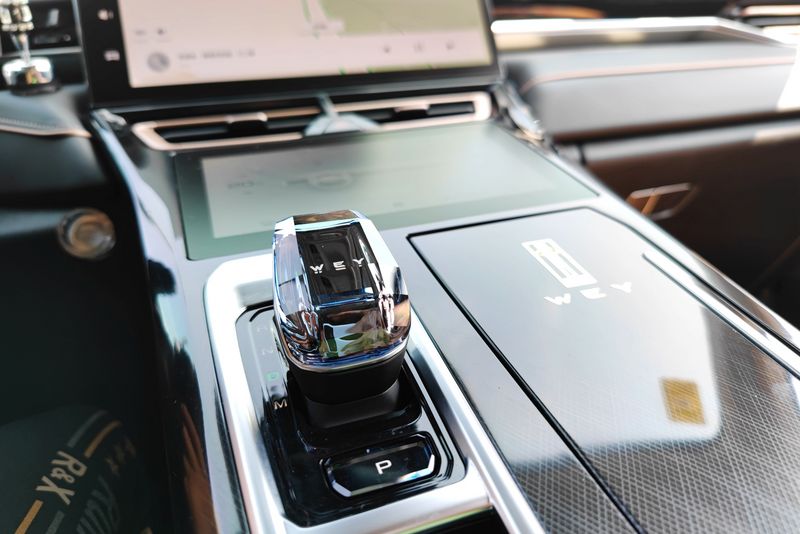 这个车里另一个引人注目的地方是水晶档把,我试驾时第一眼看到这个还以为是个什么装饰用的艺术品,哈哈。