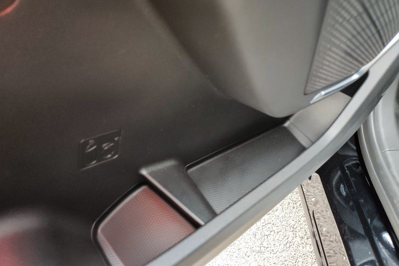 车门下边这个空间很实用,放个钥匙、烟盒什么的很方便,不过手机是不建议放的。