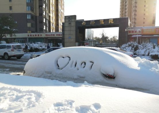 路边的汽车,被积雪完美覆盖,成了情侣们镌刻爱情的好地方。