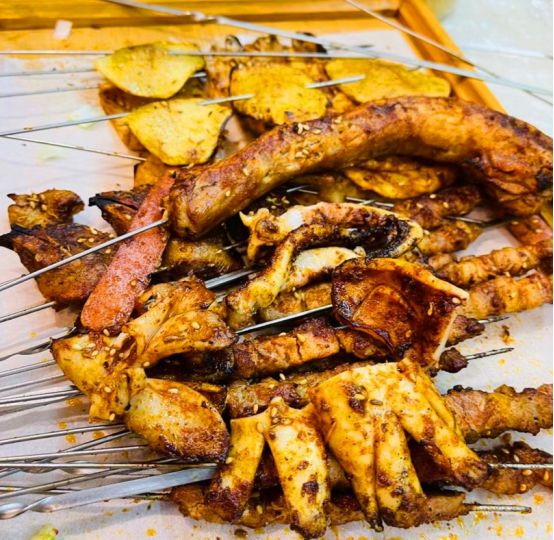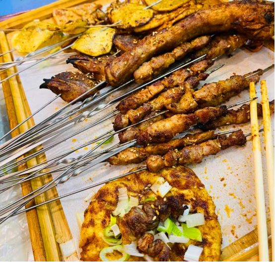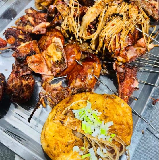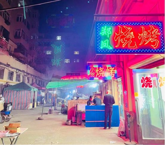 这就是我们这的烧烤一条街,各家都有各家的特色,我们今天选择的是小宋烧烤,他家的鸡脖子可以说是整条街的—绝,只有被模仿,从未被超越