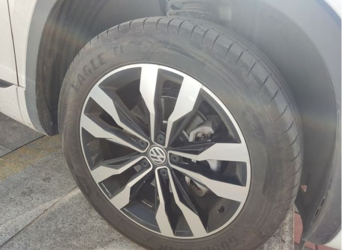 我的探岳出厂配置的固特异鹰驰F1,固特异助力F1赛事,获得很多冠军,也因此有了这款叫F1的轮胎。鹰驰F1轮胎看着精准的操控和灵敏的刹车性能,同样具有固特是轮胎一贯的长里程特性、复合材料黑科技,鹰驰F1作为高端SUV轮胎,很多地方要比竞品具有优势,其具有鹰抓抓地技术,跑公路同样是舒适静音,跑雨天,也是非常稳。大众的车给人感觉就是扎实,配上庭他F1这套轮胎,探岳操控灵活,提速快,路感清晰。我的380TSI四驱Rline探岳,现在跑了两万多公里,平时市区道路多,偶尔去自驾旅游,因为工作原因,也有几次开长途,我很喜欢探岳在高速上的表现,四驱探岳跑高速是真的爽。超车跟玩一样,也非常稳。唯一遗憾的是探岳确实费油,市区12个,加95的油,我钱包直接憋了。白色探岳辨识度高,就是不耐脏,但是晚上行车安全,大灯灯光也不错。车辆视野开阔,行车稳,隔音一般。