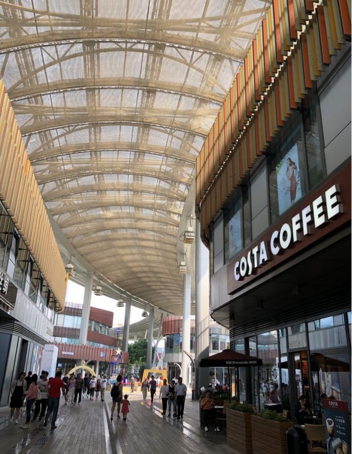 一到诚品对面的圆融广场,我刚停好车回到地面,眼前的景象就让人吃惊不已了,仿佛从冬季穿过了秋,直接回到了夏季。我那个汗啊,真的是汗,衣服穿多了。