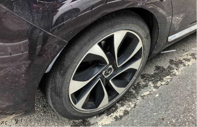 固特异轮胎似乎也表示很吃惊,你看胎毛都扎起来了,哈哈。