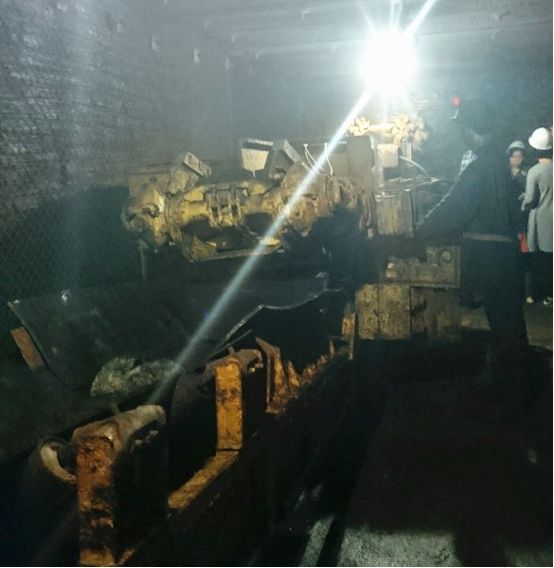 浏览过博物馆之后,在讲解员的带领下,我们乘坐电梯开始了井下探秘之旅。走出电梯,我们带上安全帽,穿越到了神秘的地下世界,亲自体验从原始采煤到现代化采煤的演进历程。