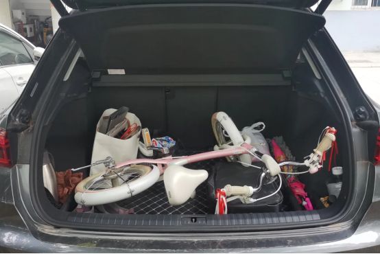 后备箱空间还是蛮大的,带孩子逛公园啥的,放自行车都够了。