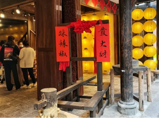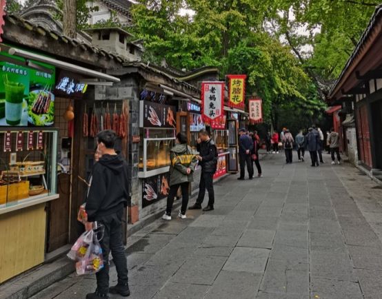 过了锦里古牌坊的那段,就是特色小吃街。