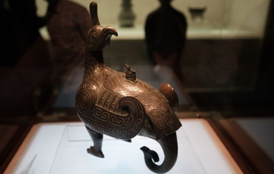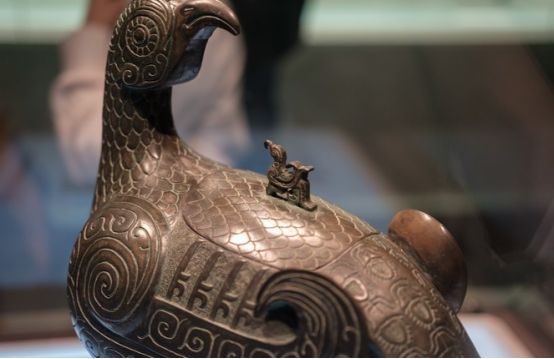 鸟尊,年代为西周中期偏早,用途为盛酒器,出土于第一代晋侯燮父墓中。整体造型为伫立回首的凤鸟形,凤尾下弯成一象首,与双腿形成三点支撑。鸟尊被誉为山西博物馆的“镇馆之宝”是一定要看的。