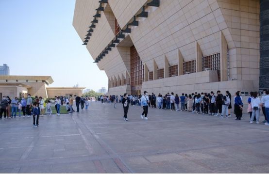 注意,要关注山西博物院的微信公众号,提前预约参观时间。进馆要出示行程码、健康码,还有预约码,所以入馆速度难免会慢一点,排队排了半个小时才进大门。