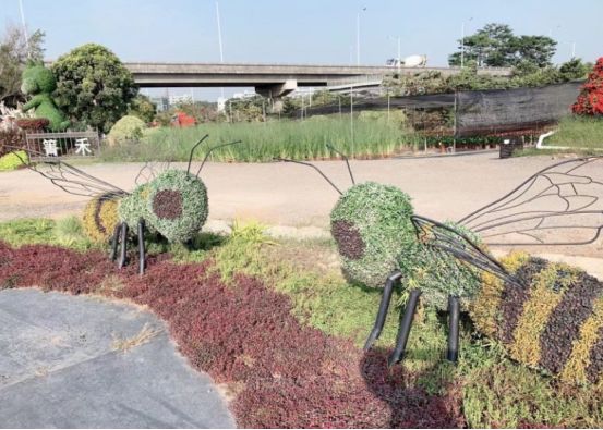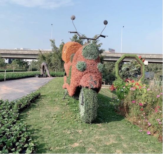 远处有一座摩托造型的植物吸引了我这个逼的造型开始我还以为是真的.感觉挺不错的。