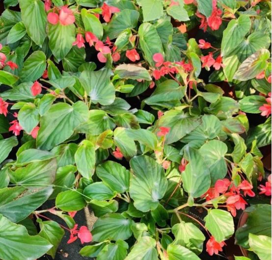 虽然现在是初秋,但是地上的像小青菜的宽大叶子,此时的红花倒是成了陪衬了,清脆的颜色