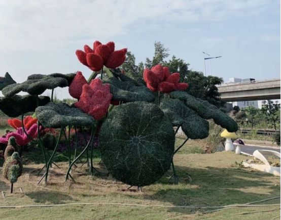 很远的地方我就闻到了荷花的香味,顺着花的芳香我看到了这个造型奇特菏叶和荷花为工作人员的心灵手巧所折服。
