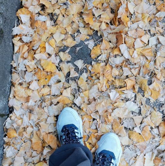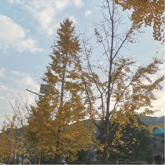 打道回府已然是华灯初上之时,五口之家银杏赏落叶,不负青春无线风。