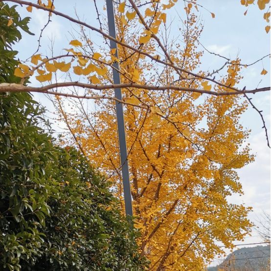 满树披金初冬寒