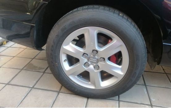 感觉老爸的心态还是比较年轻的,看这个骚红的卡钳就知道了。其实我对汽车并不是很了解,对于大部分汽车的了解也仅仅停留在价格层面。不过大七用的这个固特异轮胎我还是很眼熟的,因为我发现那些豪车基本用的就是米胖、倍耐力和固特异这几个品牌的产品。