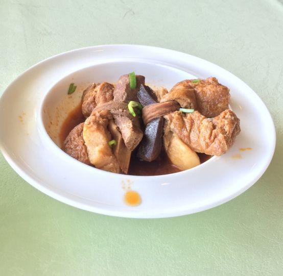 这是两一个特色菜,用牛肚还是什么把鹅肝和一些食材扎起来做得,味道并不咋样,价格倒是挺贵的。