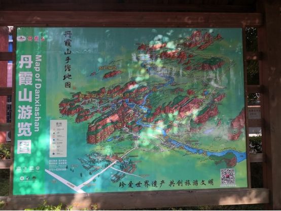 官网的介绍如下:丹霞山由680多座顶平、身陡、麓缓的红色砂砾岩石构成,“色如渥丹,灿若明霞”,据地质学家研究表明:在世界已发现1200多处丹霞地貌中,丹霞山是发育最典型、类型最齐全、造型最丰富、景色最优美的丹霞地貌集中分布区。其面积有292平方千米。锦江自北向南穿境而过,风景区由本体山峰(2.5平方千米)和外围景观两部分组成;东起僧帽峰,南抵屯军寨。