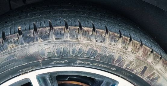 M加S的轮胎是固特异的御乘系列。可以看到那个螺栓。
