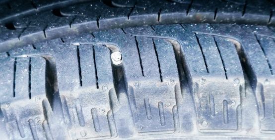 当时是全程600多公里的路程。应该是前车上掉下来的螺栓。直接扎进了轮胎里面。