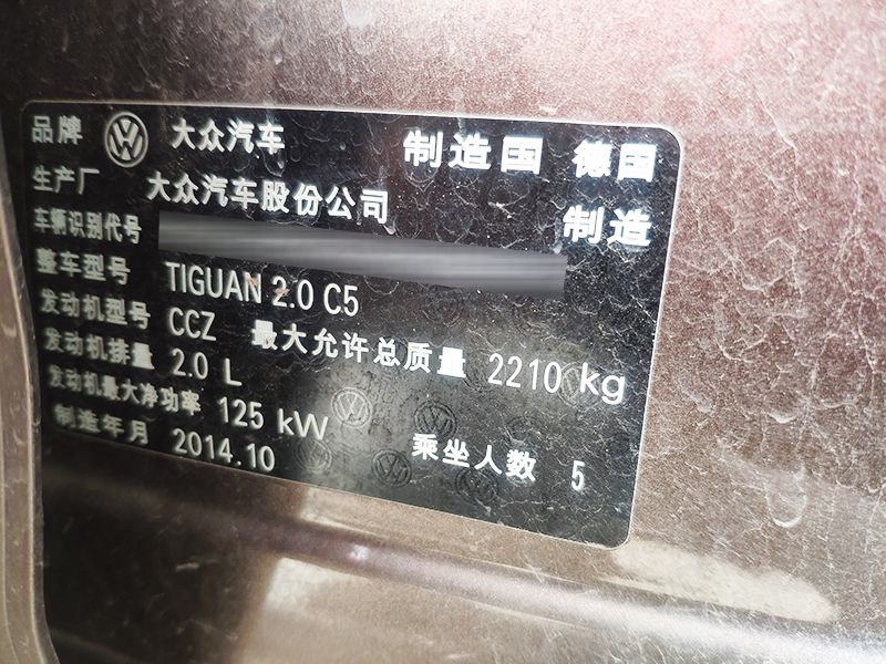 这台进口大众途观Tiguan 2.0T,该车搭载着型号为CCZ的2.0L涡轮增压发动机,其最大功率为125KW(170PS)/4300rpm,其最大扭矩为280NM/1700-4200rpm,与之匹配的是6挡手自一体变速箱。