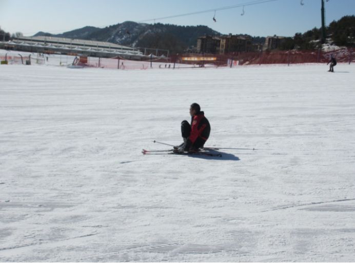 我还是蛮喜欢滑雪这项运动的。看前面这哥们,直接蹲着滑,哈哈。