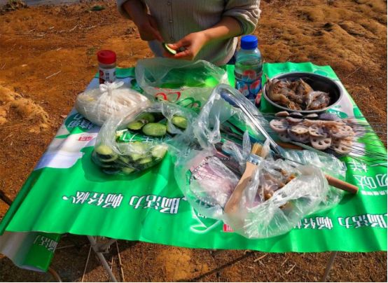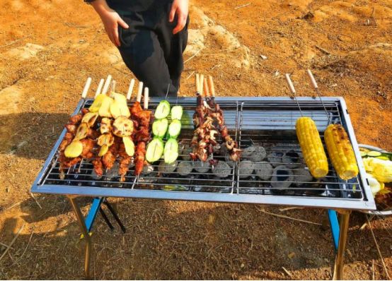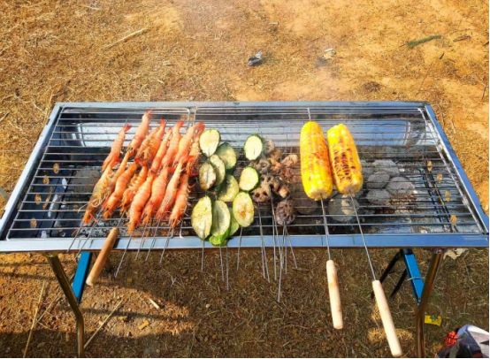 简单准备一下 ,开始串串,都是提前准备的食材,串上之后就可以开烤了