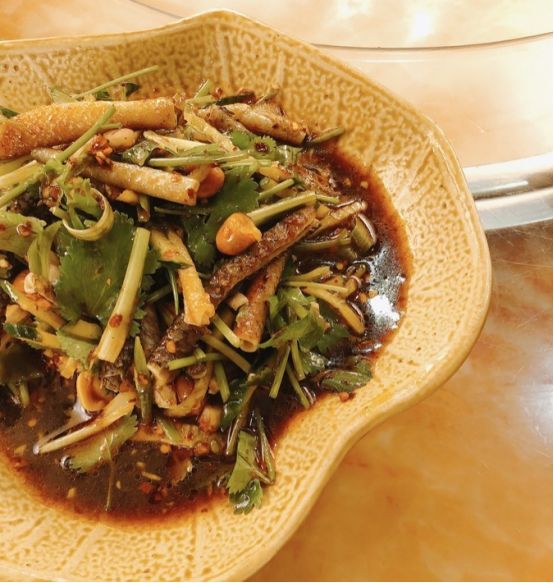 争取在日落之前下山,游览了一小段我们就原路返回了,到村委会清洗了鞋底,在天黑之前返程。晚饭吃了一顿著名的东江湖三文鱼套餐,三文鱼的味道并不惊喜,但鱼籽煎蛋和凉拌鱼皮很有特色。