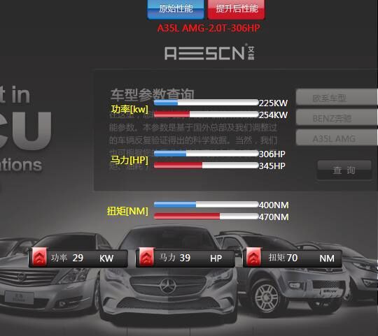 艾森发布奔驰AMG A35L程序方案:一切以安全、稳定为前提,在不损伤发动机寿命前提下,将动力优化至最佳,同时符合车主的驾驶需求,性能参数如下:
